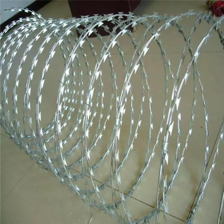 工程案例 1、電鍍刀片刺繩平時也可以稱為冷鍍鋅刀片刺繩;