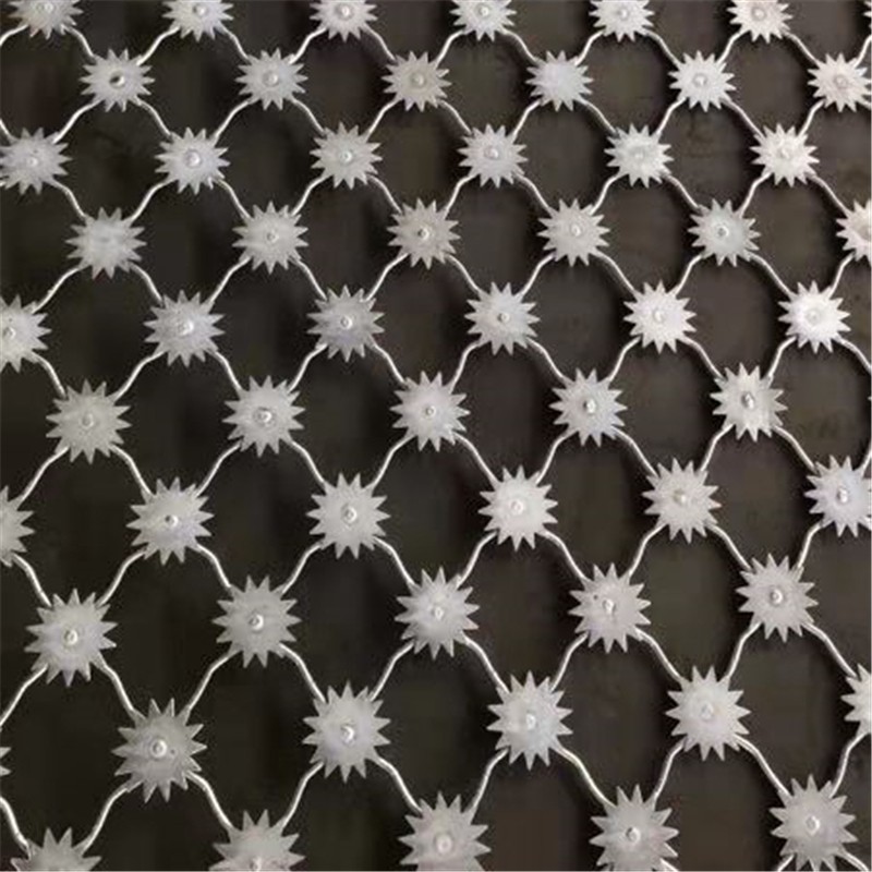 新聞動態(tài)梅花刺鋼網(wǎng)墻 梅花刺片隔離網(wǎng) 巡邏道梅花刺片網(wǎng)一般安裝于圍墻的巡邏道上,起到防御效果。一般、等高戒備防御的場所需要按照需要安裝。 梅花刺鋼網(wǎng)墻 是重要的防御系統(tǒng),圍墻上加裝隔離網(wǎng)是為了提供的防御能力。根據(jù)規(guī)定:中度戒備圍墻一般應高出地面5.5m,墻體應達到0.49m厚實心磚墻的安全防護要求,圍墻上部宜設(shè)置武裝巡邏道。高度戒備圍墻應高出地面7mm,墻體應達到0.3m厚鋼筋混凝土的安全防護要求,上部應設(shè)置武裝巡邏道。 梅花刺鋼網(wǎng)墻 梅花刺片隔離網(wǎng) 巡邏道梅花刺片網(wǎng)圍墻隔離網(wǎng)一般規(guī)格標準:網(wǎng)片樣式:鋼筋焊接式、刀刺焊接式、邊框式等等