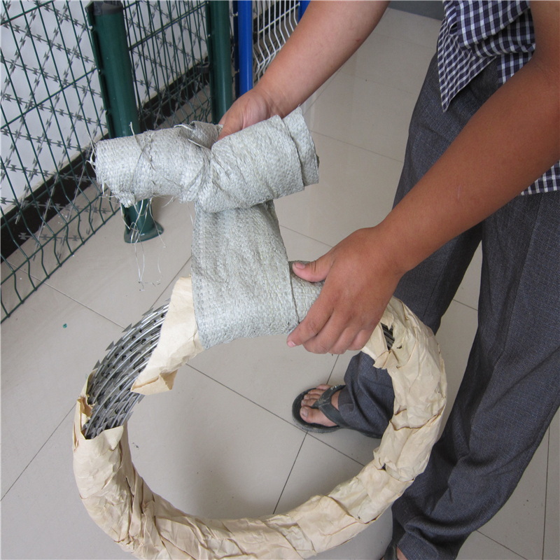 防護(hù)性能優(yōu)良、美觀、花樣繁多、施工迅速、嚇阻效果。好刀片刺網(wǎng)又名刮刀型刺絲,是一種近年發(fā)展起來的防護(hù)、隔離能力較強(qiáng)的新型防護(hù)網(wǎng)產(chǎn)品。鋒利的刀型刺由雙線扣裝后成蛇腹?fàn)睿让烙^又讓人不寒而栗。起到了很好的阻嚇作用。同時(shí)該產(chǎn)品具有美觀、防阻效果好、施工便利等優(yōu)點(diǎn)。