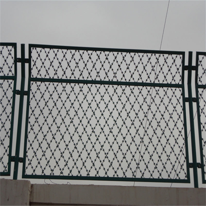 監(jiān)獄隔離網(wǎng)是一種新型防護(hù)網(wǎng),由銳利尖角鍍鋅鋼板或不銹鋼薄板做刀片,鋼絲做芯線組合而成的防護(hù)器材該產(chǎn)品具有嚇阻、防翻越等效果,材質(zhì)堅(jiān)硬,高強(qiáng)度,高張力,造型設(shè)計(jì)獨(dú)特,不宜觸摸,因而能達(dá)到極好的防護(hù)隔離效果。還具有施工簡(jiǎn)便,經(jīng)濟(jì)實(shí)用等優(yōu)點(diǎn)。