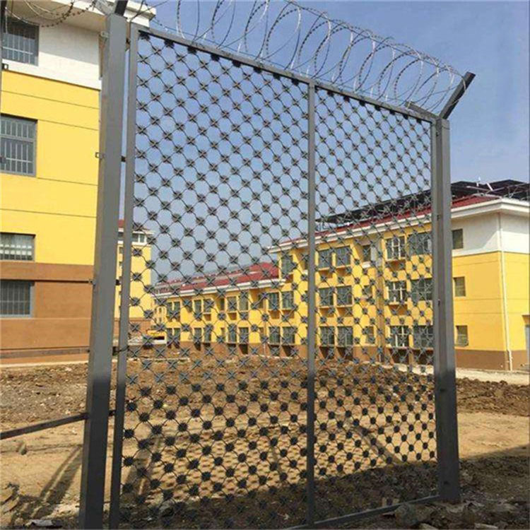 工程案例監(jiān)獄護(hù)欄網(wǎng)大門,刀片刺網(wǎng)大門,梅花刺網(wǎng)大門,監(jiān)獄防護(hù)網(wǎng)是非常重要的監(jiān)區(qū)安全防護(hù)設(shè)施,是由焊接鋼網(wǎng)加蛇腹形刀刺網(wǎng)組合而成。產(chǎn)品具有結(jié)構(gòu)新穎、堅(jiān)固緊密、網(wǎng)面平整、網(wǎng)孔均勻、刀鋒銳利、防攀爬、耐腐蝕性強(qiáng)等特點(diǎn)。Y型架上邊架蛇腹型刀刺:由熱鍍鋅鋼板或不銹鋼薄板沖壓出尖利的刀片狀,高張力鍍鋅鋼絲或者不銹鋼絲做芯線組合而成的阻盡器材。刀刺直徑采取50或60厘米,刀型整潔、刀片鋒利、排列均勻致密、連接堅(jiān)固、防腐才能強(qiáng),可能達(dá)到防擎越、防拆卸更高保險(xiǎn)等級(jí)。
