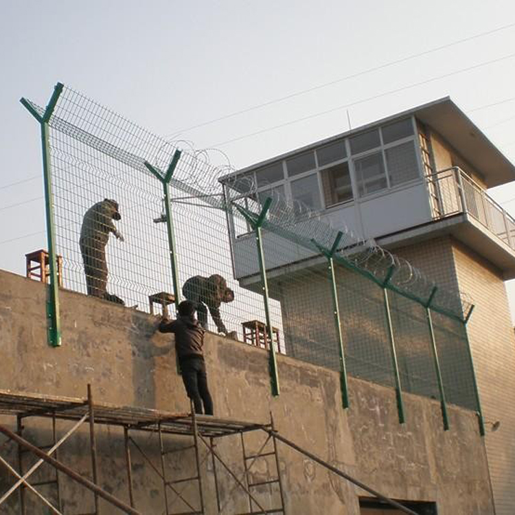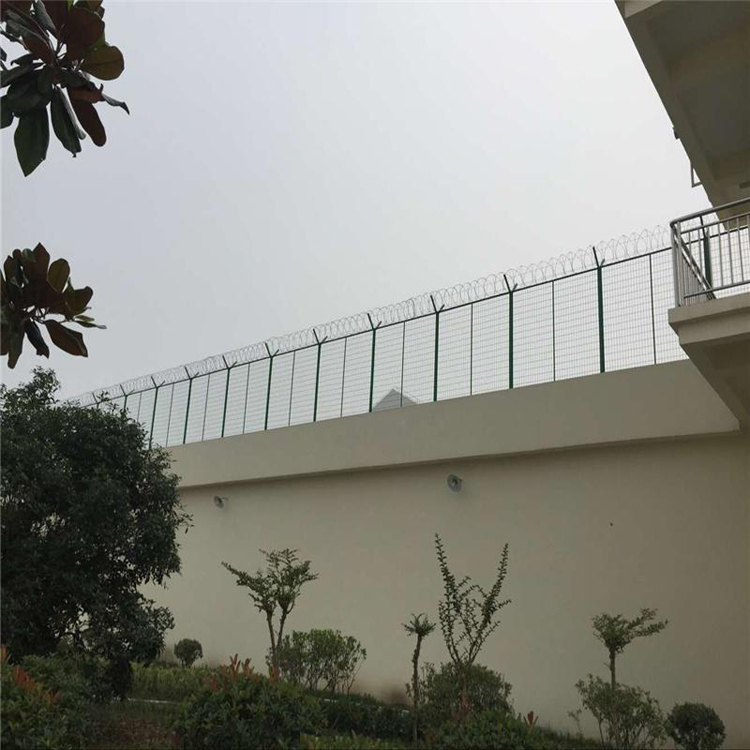 監(jiān)獄圍墻加高隔離網(wǎng)是監(jiān)獄中經(jīng)常使用的圍欄,監(jiān)獄護欄網(wǎng)是一種新型的安全圍欄,又稱“Y型安全隔離網(wǎng)”通常在圍欄上方裝有刺籠刀片,并用鐵絲網(wǎng)固定能有效的防攀爬和人為破壞,防止囚犯逃逸、巡視檢查方便。被廣泛應用在監(jiān)獄,軍事基地等高安全場所。在監(jiān)獄護欄網(wǎng)頂部安裝刀片刺籠有很好的增加了安全防護性能??梢云降匕惭b,也可以在圍墻上二次安裝。和機場護欄網(wǎng)相似,由V形支柱、焊接網(wǎng)和緊固件組成,不易變形。