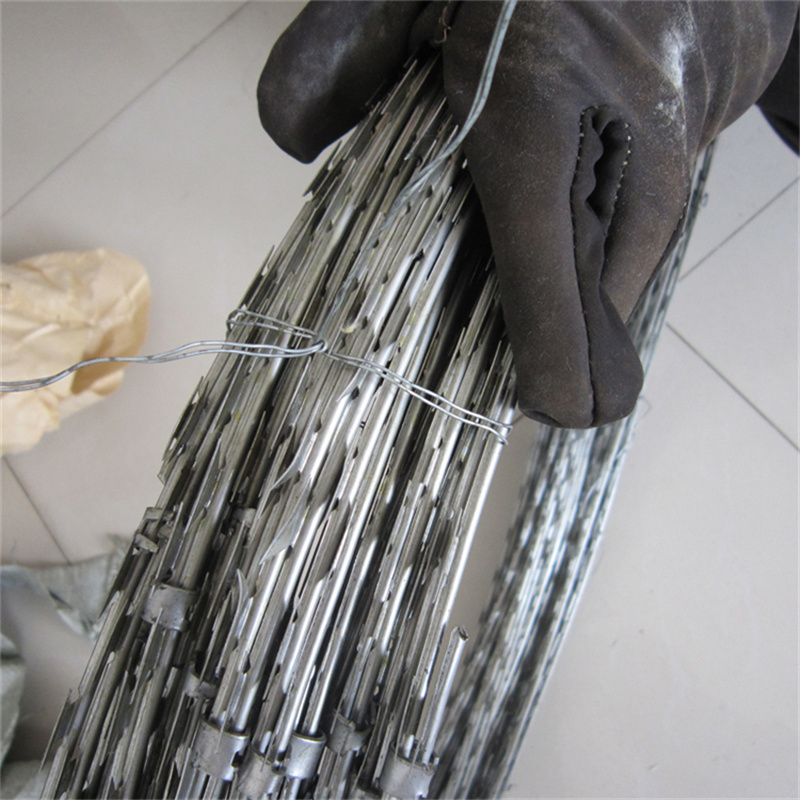 材質(zhì):熱鍍鋅,不銹鋼304。目前我國的絕大部分監(jiān)獄已經(jīng)淘汰了熱鍍鋅刀刺網(wǎng),選用不銹鋼304材質(zhì),解除了兩年一銹三年一換的后顧之憂。