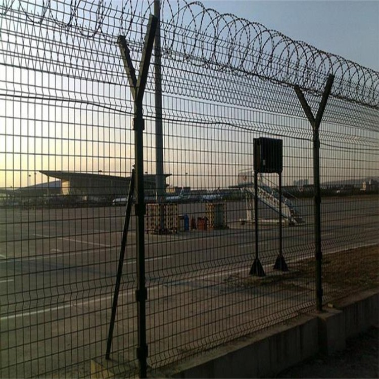 機(jī)場(chǎng)是一個(gè)對(duì)安全性要求高的場(chǎng)所,所以防護(hù)欄對(duì)于機(jī)場(chǎng)而言就是牢固的外墻。機(jī)場(chǎng)鋼筋網(wǎng)圍界又稱作“Y型安全防御護(hù)網(wǎng)”,是由折彎網(wǎng)片,V型支架立柱,加強(qiáng)型焊接片網(wǎng),上面有刀片刺繩(又稱刀片網(wǎng),刀片護(hù)欄)安全防盜連接件組成強(qiáng)度和安全防御性級(jí)別很高。被廣泛應(yīng)用在機(jī)場(chǎng),基地等安全場(chǎng)所。