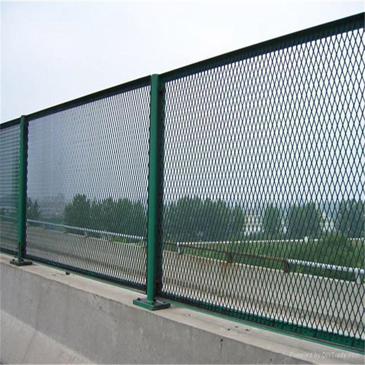 高速公路防落物網(wǎng)采用鋼板網(wǎng)結(jié)構(gòu),鋼板網(wǎng)為 2.5mm 厚整板加工而成,絲梗寬度為 2.5mm,網(wǎng)格尺寸為 22×60mm,高速公路防落物網(wǎng)網(wǎng)片高1.2m。網(wǎng)片焊接于角鋼邊框上。除緊固件、地腳螺栓、預(yù)埋法蘭盤采用熱浸鍍鋅處理外,其它構(gòu)件均應(yīng)進(jìn)行涂塑處理,涂塑層顏色采用薄荷綠;防腐符合《公路交通工程鋼構(gòu)件防腐技術(shù)條件》GB/T18226-2015 的要求。