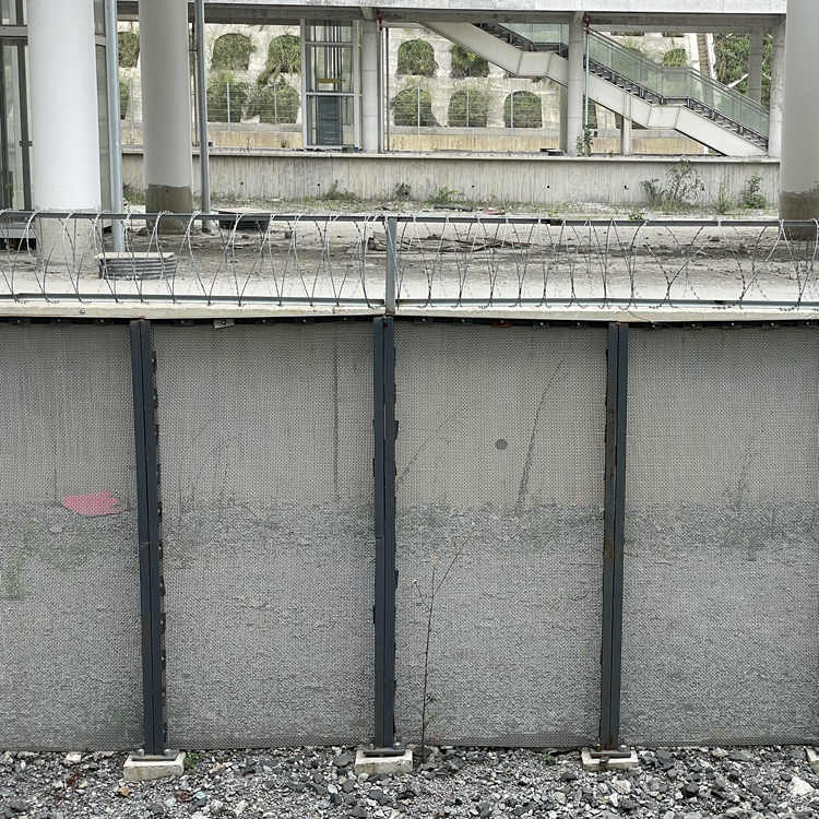 工程案例熱鍍鋅鐵路防爬刺高度為70-120cm,安裝在柵欄上部,倒刺上部30cm向外折角45°;豎向、橫向鋼筋采用Φ12mm鋼筋,頂部焊接特質(zhì)尖刺;豎向鋼筋間距≤10cm;豎向扁鋼采用30*5.0mm鋼板;表面鍍鋅防腐處理,鍍鋅量不少于270g/m2;標(biāo)準(zhǔn)的熱鍍鋅防銹層則可保持8-10年而不必修補(bǔ);鍍層的韌性強(qiáng):鋅層形成一種特別的冶金結(jié)構(gòu),這種結(jié)構(gòu)能承受在運(yùn)送及使用時(shí)受到機(jī)械損傷;可靠性好:鍍鋅層與鋼材間是冶金結(jié)合,成為鋼表面的一部份,因此鍍層的持久性較為可靠;全面性防腐:鍍件的每一部分都能鍍上鋅,即使在凹陷處、尖角及隱藏處都能全面地受到保護(hù);現(xiàn)場(chǎng)安裝防爬刺與防護(hù)柵欄矩管之間采用Φ12mm鋼筋連接焊接固定。
