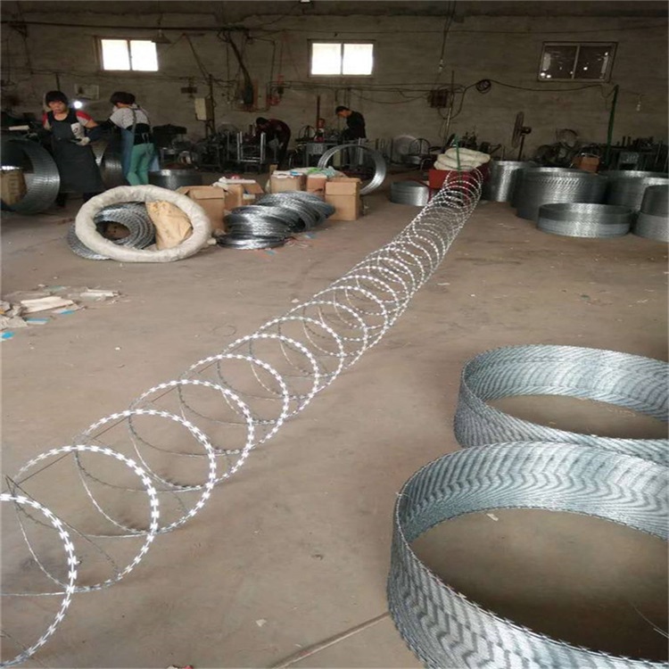 刀片刺隔網(wǎng)每2圈有3-7個(gè)卡扣,而且是圈圈相卡,拉開以后形成螺旋狀,拉伸的時(shí)候注意一定要帶防護(hù)手套,避免劃傷。拉開的時(shí)候只需要固定刺網(wǎng)的一邊,然后向相反方向拉開就行,注意孔的間距不要太大,不然影響美觀效果。收的時(shí)候只要慢慢的送回去就行,操作簡單,施工便利。