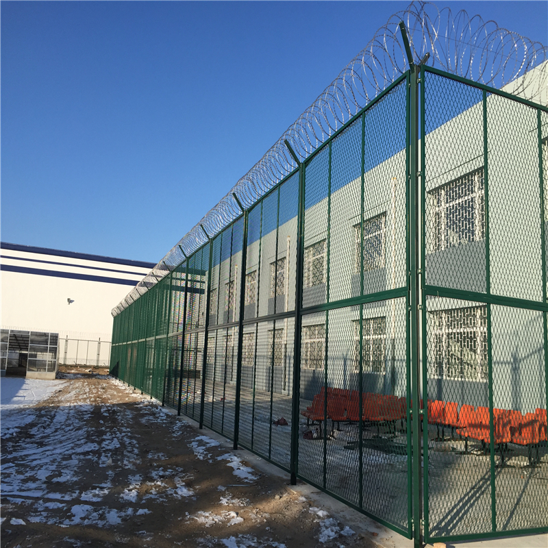 監(jiān)獄、看守所巡邏道隔離網(wǎng)上部安裝刀片刺網(wǎng)(刺絲滾籠),刀片刺網(wǎng)具有嚇阻、防翻越等效果,材質(zhì)堅(jiān)硬,高強(qiáng)度,高張力,造型設(shè)計(jì)獨(dú)特,不宜觸摸,因而能達(dá)到極好的防護(hù)隔離效果。巡邏道隔離網(wǎng)還具有施工簡(jiǎn)便,經(jīng)濟(jì)實(shí)用等優(yōu)點(diǎn)