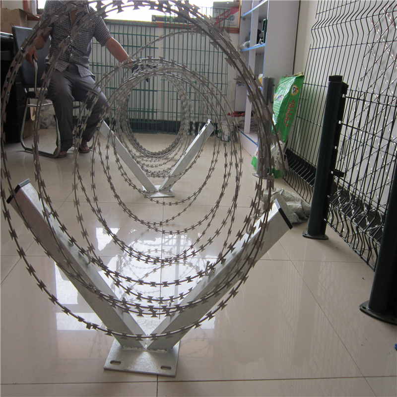 1、鐵路刺絲滾籠采用鐵路刺絲滾籠繞圈后相鄰兩圈每隔120度用刺絲連接卡固定張開后形成蛇腹網(wǎng)狀,閉合后學校防爬網(wǎng)卷徑為50cm,張開后每交叉圈安裝間距20cm,直徑不小于45cm。