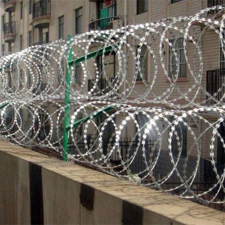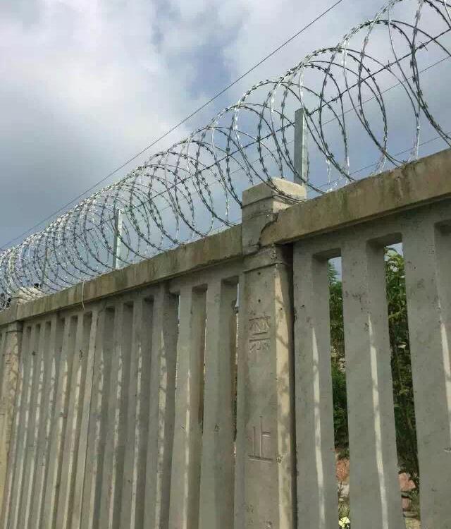 新聞動(dòng)態(tài)2012年最新《鐵路線路防護(hù)柵欄》[通線(2012)8001]通用參考圖出爐! 文獻(xiàn)規(guī)定:鐵路柵欄一改往日焊接鋼絲網(wǎng)柵欄、刺絲網(wǎng)柵欄等產(chǎn)品,改為防御性更強(qiáng)、壽命更長(zhǎng)久的:鋼筋混凝土柵欄+0.5米高刺絲滾籠的防護(hù)柵欄。詳細(xì)內(nèi)容如下: 鋼筋混凝土柵欄:詳見(jiàn)圖紙 0.5米高刺絲滾籠組成:刺絲刺繩+刀刺滾籠+鋼絲+立柱 圖集中:5、刺絲滾籠:(1)刺絲滾籠采用刀片刺繩繞圈后相鄰兩圈每隔120度用刺絲連接卡固定,張開(kāi)后形成蛇腹網(wǎng)狀,閉合后刀片刺繩卷徑為50cm,張開(kāi)后每交叉圈安裝間距20cm,直徑不小于45cm。(2)刀片刺繩由沖切鋼板采用機(jī)械軋?jiān)阡摻z上成型,刀刺寬度22mm,刀刃垂直間距15mm,刀刺縱向間距34mm,芯絲直徑為2.5mm。刀片厚度0.5mm的Q195鋼板網(wǎng)沖切制作。芯絲由HPB300 -6.5mm高線鋼絲冷拔加工。(3)刺絲滾籠由刺絲連接卡扣與固定在支架上的縱向拉筋相連接。縱向拉筋與支架的連接采用-2.5mm的冷拔鍍鋅鋼絲繞2圈后擰緊固定。支架設(shè)置在跨度3m防護(hù)柵欄的立柱和跨中位置,其中跨度進(jìn)設(shè)置與立柱上部,支架與防護(hù)柵欄采用支架抱箍連接,對(duì)于已經(jīng)安裝金屬網(wǎng)片的防護(hù)柵欄。刺絲滾籠直接采用-2.5mm的冷拔鍍鋅鋼絲或刺絲連接卡扣固定于金屬網(wǎng)橫片和金屬絲上。(4)刺絲滾籠的下緣距離鋼筋混凝土防護(hù)柵欄上緣的垂直距離為0.05m.6.陡坡地段防護(hù)柵欄下檻下部與地面間的間隙采用C25混凝土封閉,寬度180mm,與立柱兩倒平齊,埋入地面以下不小于0.3m.每單元于地面處留移100mm泄水孔。