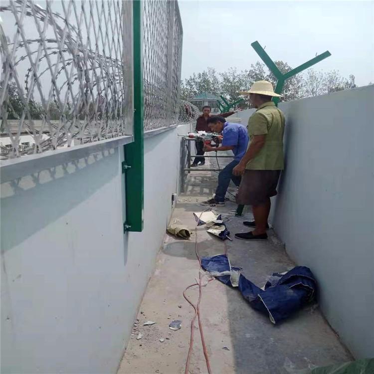 監(jiān)獄護(hù)欄網(wǎng)又稱作“Y型安全防御護(hù)網(wǎng)”和機(jī)場護(hù)欄網(wǎng)通用,是由V型支架立柱,加強(qiáng)型焊接片網(wǎng),安全防盜連接件和熱鍍鋅刀片刺籠組成強(qiáng)度和安全防御性很高。近年來,被廣泛應(yīng)用在監(jiān)獄,軍事基地等高安全場所。注:如果在監(jiān)獄護(hù)欄網(wǎng)頂部加裝刀片刺絲、刀片刺繩后又很好的增強(qiáng)了安全防護(hù)性能。采用電鍍、熱鍍、噴塑、浸塑等防腐形式,具有很好的抗老化、抗曬、耐候等特點(diǎn)。其產(chǎn)品造型美觀、花色多樣,既起到圍欄作用,又起到美化作用。由于具有安全性高、防攀爬能力好,網(wǎng)片連接方式采用特制SBS緊扣件,有效防止人為的破壞性拆卸,橫向四道折彎加強(qiáng)筋,使網(wǎng)面強(qiáng)度顯著增加。