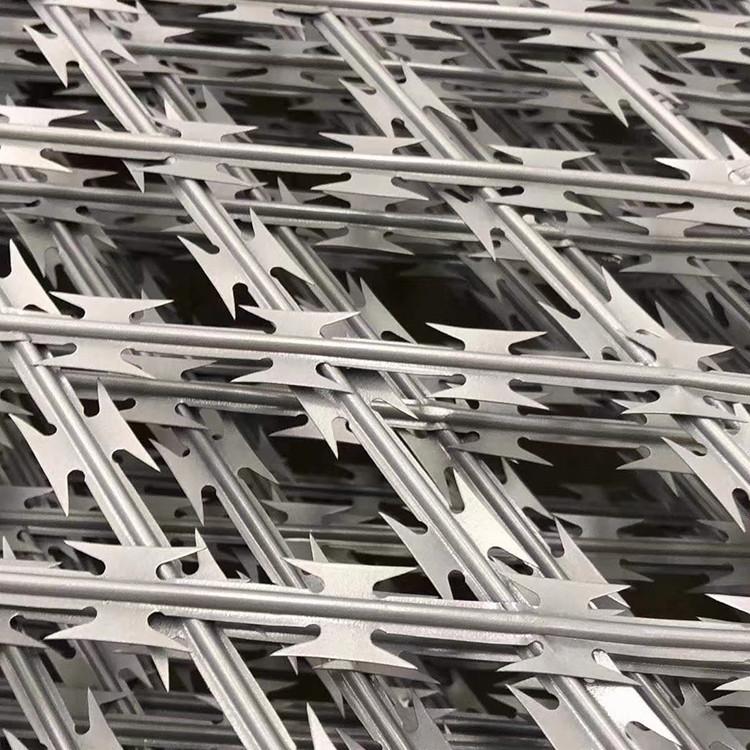 刀片鐵絲是一種封閉材料,它由鍍鋅鋼板或不銹鋼板制成的刀片,帶有鋒利的刀片和高壓鍍鋅芯線或不銹鋼芯線。刀片鐵絲具有獨(dú)特的外觀和安全性,可達(dá)到優(yōu)異的保護(hù)和屏蔽效果。剃須刀鐵絲的主要材料是鍍鋅鋼板和不銹鋼板。