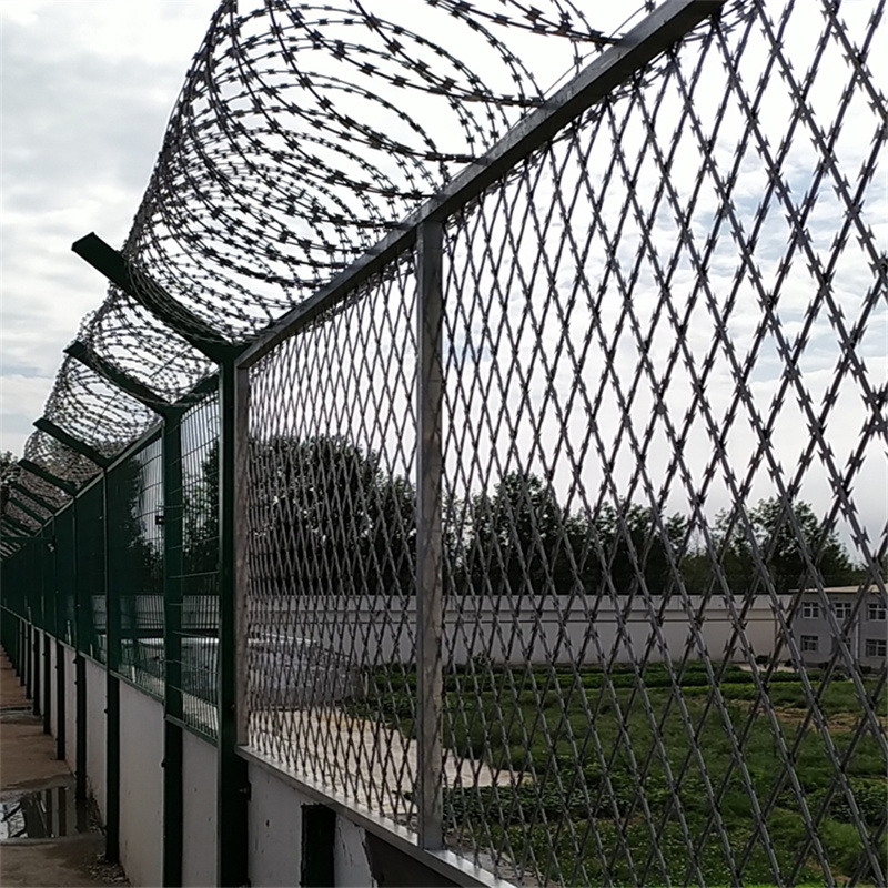 看守所鐵絲網(wǎng)的守護(hù)者,恐嚇,防止犯人越獄逃跑起到了至關(guān)重要的作用,所以看守所鐵絲網(wǎng)非常重要的監(jiān)獄安全防護(hù)設(shè)施,由焊接鋼網(wǎng)加蛇腹形刀刺網(wǎng)組合而成。產(chǎn)品具有結(jié)構(gòu)新穎、堅(jiān)固緊密、網(wǎng)面平整、網(wǎng)孔均勻、刀鋒銳利、防攀爬、抗腐蝕性強(qiáng)等特點(diǎn)。建設(shè)于看守所的內(nèi)外墻地面及高墻之上,網(wǎng)墻內(nèi)側(cè)或頂部加裝蛇腹形刀刺網(wǎng),形成一道高不可攀、難以逾越的隔離障礙。配合高壓打擊電網(wǎng)、各種監(jiān)控報(bào)警設(shè)備確保監(jiān)獄安全萬(wàn)無(wú)一失。