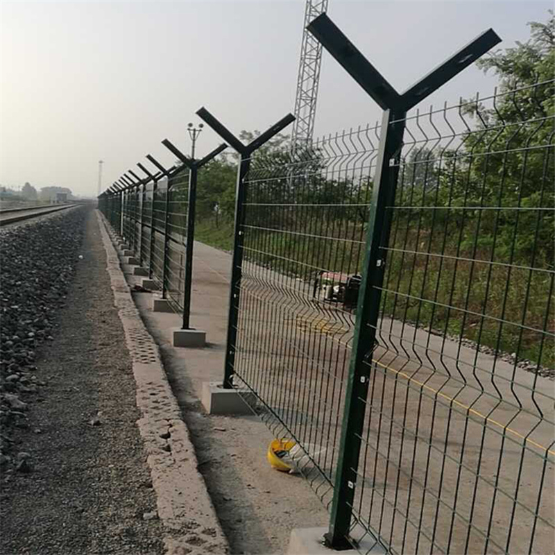 機(jī)場(chǎng)圍界由三部分構(gòu)成,圍界面板、Y型立柱、刀片刺網(wǎng)。其中圍界面板有兩種常用結(jié)構(gòu):焊接網(wǎng)和菱形勾花網(wǎng)(勾花網(wǎng)采用雙涂層防腐處理,先鍍鋅再包塑;個(gè)別要求高的機(jī)場(chǎng)會(huì)要求用鋁包鋼絲勾花網(wǎng)用作圍界面板)