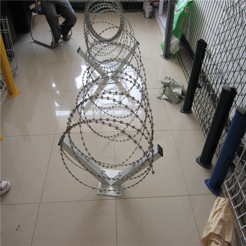 新聞動(dòng)態(tài)邊境刀片刺網(wǎng)防護(hù)欄邊境刀片刺網(wǎng)防護(hù)欄廠家邊境刀片刺網(wǎng)防護(hù)欄:又稱焊接型刀片刺網(wǎng)片,邊境刀片刺網(wǎng)防護(hù)欄型號(hào):刀片刺網(wǎng)分為BTO和CBT兩種,是把刀片刺絲焊接成菱形孔或者方形孔的刀片刺網(wǎng),如果想攀爬翻越,網(wǎng)狀的刀片刺網(wǎng)刀片鋒利,手不能握,腳不能攀登,堅(jiān)決阻止人逾越的防護(hù)墻,具有很強(qiáng)的恐嚇和阻止效果,既美觀又實(shí)際效果顯著.,深受監(jiān)獄,軍隊(duì),設(shè)施的喜好.監(jiān)獄防攀爬網(wǎng)和蛇腹型刀片刺繩結(jié)合使用,使人望而卻步,擊破人的僥幸心理.監(jiān)獄防攀爬網(wǎng)由刀片型直線刺網(wǎng)交叉焊接成型,可用于防盜窗,高速護(hù)欄,隔離柵.施工迅速,效果顯著,有多種架設(shè)方式可供選擇,既省經(jīng)費(fèi),又可達(dá)到嚇阻的效果.