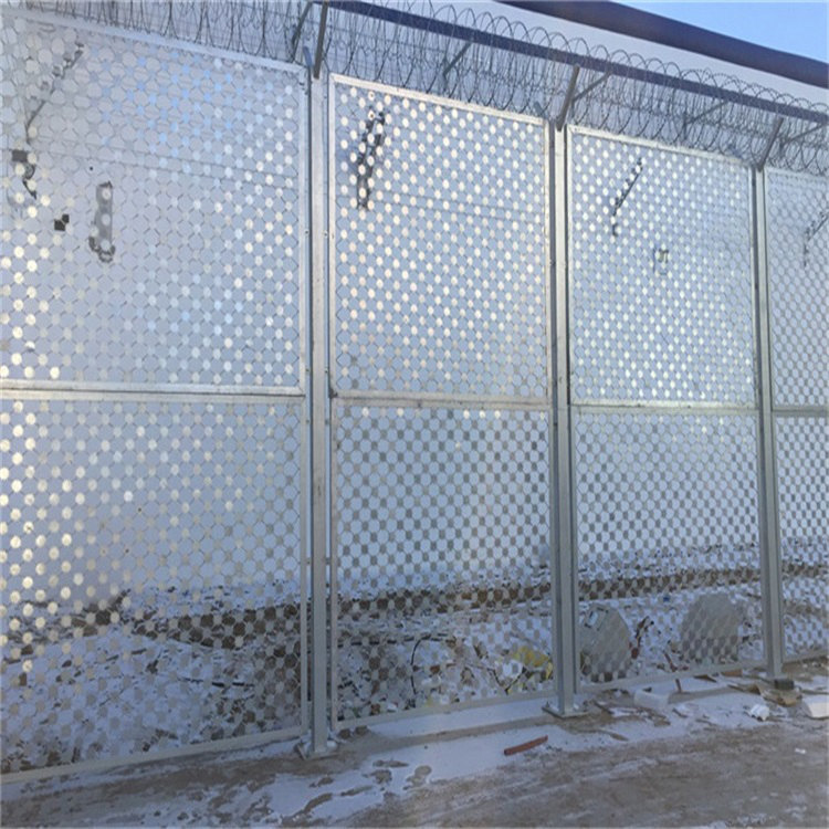 監(jiān)獄鋼網(wǎng)墻又稱作“Y型安全防御護網(wǎng)”,是由V型支架立柱加強型焊接片網(wǎng),安全防盜連接件和熱鍍鋅刀片刺網(wǎng)組成強度和安全防御性級別很高。被廣泛應(yīng)用在監(jiān)獄,軍事基地等高安全場所。