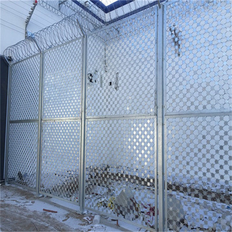 監(jiān)獄鋼網(wǎng)墻的作用一個(gè)是可以防止非法分子翻越攀爬,一個(gè)是可以代替普通的紅磚水泥圍墻,可以看到監(jiān)獄內(nèi)外部的情況,無視力阻礙,而且美觀大方,可以與周圍環(huán)境相協(xié)調(diào),給人一種深入大自然的感覺。最近咨詢監(jiān)獄梅花刺片隔離網(wǎng)的比較多,那今天對(duì)監(jiān)獄梅花刺片隔離網(wǎng)做一下產(chǎn)品介紹。下圖為監(jiān)獄梅花刺片隔離網(wǎng)實(shí)拍