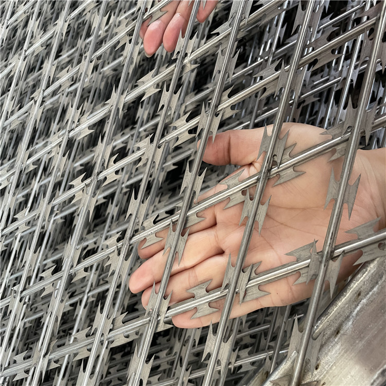 新聞動(dòng)態(tài)監(jiān)獄焊接式刀片刺隔離網(wǎng),刀片采用熱鍍鋅或不銹鋼薄板,鋼絲采用熱鍍鋅鋼絲或不銹鋼絲,經(jīng)過機(jī)器沖壓、數(shù)控高頻排焊而成。因其特珠的外形,相較于之前的普通鋼網(wǎng)墻,無法采取腳踩、手握的方式翻越,防攀爬性能、安全性能有所增加。