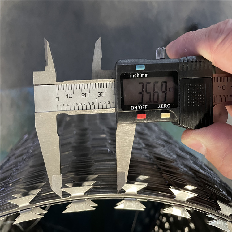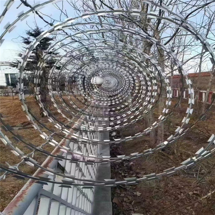 為了增強安全防御,應生了刀片刺繩這種產品,常用的就是BTO-22刀刺網,材質:熱浸鋅和不銹鋼,型號:BTO-22,芯線:常用2.5mm,厚度:0.5mm,刀片長度:22mm*15mm,刀片間距:34mm。直徑300-1000mm,常用的是500mm的。如果是陰雨多的地方建議選擇不銹鋼刀刺網材質,其他地方熱浸鋅的就可以。特殊場地,如監(jiān)獄,機場等重要防護使用,就要選擇不銹鋼材質,而且必須是達到標準要求的,想要達到國標要求的304不銹鋼刀刺網它的芯線,必須全部采用304材質,使用年限大大提高了,價位也就比市面上銷售的刀刺網高出很多。也有的地方使用201材料的,但是性能方面略差相對比較便宜,201含鎳低相比性能就不如304的蛇腹形刀刺網,不銹鋼材質刀片刺網用途世界各國已將刀片刺網廣泛用于軍事重地、監(jiān)獄、政府機關、銀行,以及生活小區(qū)圍墻、私人住宅、別墅的圍墻、門窗、高速公路、鐵路護欄以及邊境線等用來防護保安。