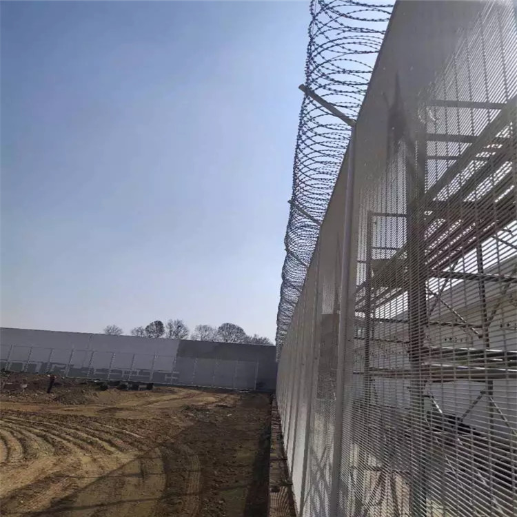 其次,監(jiān)獄隔離網(wǎng)必須搭配螺旋刀刺網(wǎng)使用來增加防護(hù)等級,防止犯人越獄,保證社會安全。隔離網(wǎng)安裝高度一般在5米高左右,內(nèi)外兩層,兩層之間可加刀片刺繩,防止攀爬逃脫。在圍墻頂部必須安裝刀片刺繩,刀片刺繩的加裝對監(jiān)獄的保護(hù)起到了很大的作用。另外監(jiān)獄的通道都安裝了電子控制安全保護(hù),在門口,尤其是外側(cè)都需要安裝監(jiān)獄金屬刀刺隔離網(wǎng),以便在有沖卡情況下進(jìn)行有效的攔截。