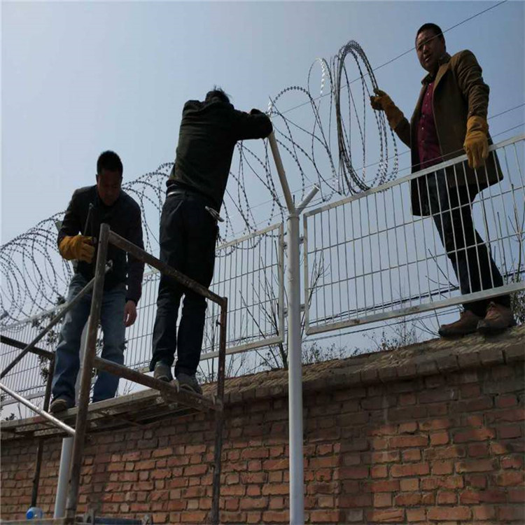 新聞動(dòng)態(tài)通常設(shè)定監(jiān)獄周界圍墻內(nèi)側(cè)5m、外側(cè)10m為警戒隔離帶,隔離帶內(nèi)應(yīng)無障礙,圍墻內(nèi)側(cè)5m、外側(cè)10m處均應(yīng)安裝一道高度為4米的防攀爬金屬隔離網(wǎng)墻和直徑600的蛇腹形刀刺網(wǎng)。這種防攀爬金屬隔離網(wǎng)墻統(tǒng)稱監(jiān)獄隔離網(wǎng)。監(jiān)獄隔離網(wǎng)主要由鋼鐵材料構(gòu)成,我們推薦使用具有高強(qiáng)度和耐腐蝕性能的鋼材。材料的選擇應(yīng)符合國(guó)家相關(guān)標(biāo)準(zhǔn),并能夠抵御外界的破壞行為。為了防止囚犯通過隔離網(wǎng)進(jìn)行攀爬和逃脫,關(guān)于采購(gòu)監(jiān)獄隔離網(wǎng)的一些建議,我們建議在隔離網(wǎng)上部安裝安全防護(hù)措施。這些防護(hù)措施可以采用密集的鐵絲網(wǎng)、玻璃纖維網(wǎng)或尖刺帶等材料,以增強(qiáng)隔離網(wǎng)的安全性。