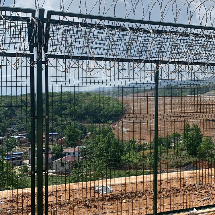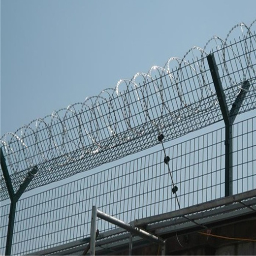 機(jī)場(chǎng)圍欄網(wǎng)由安全防盜連接件和熱鍍鋅刀片刺籠組成,是具有高強(qiáng)度和安全防御級(jí)別的隔離柵產(chǎn)品。近年來,機(jī)場(chǎng)圍欄網(wǎng)已被廠泛應(yīng)用于機(jī)場(chǎng)、軍事基地等高安全場(chǎng)所。在機(jī)場(chǎng)圍欄網(wǎng)的頂部加裝刀片刺絲、刀片刺繩,可有效增強(qiáng)安全防護(hù)性能。原料材質(zhì):采用國(guó)標(biāo)Q195低碳鋼冷拔絲、管等。