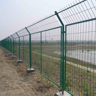 Y型柱:立柱采用圓管、方管,頂部在焊接成Y型,也可以在上邊鉤掛刀片刺網(wǎng),大大增強了鐵絲護欄網(wǎng)的安全性,這種立柱適用于機場、監(jiān)獄的防護。