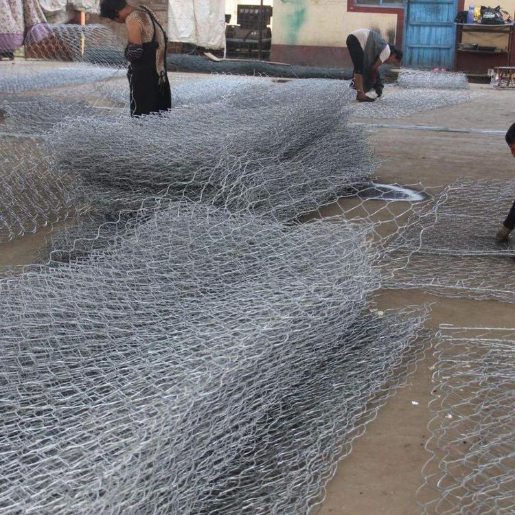 石籠網(wǎng)采用六角擰編而成過程為:原材料選取(盤條)——冷拔/鍍鋅/包塑——機(jī)器編織——人工剪切、組裝——產(chǎn)品檢驗(yàn)——包裝運(yùn)輸