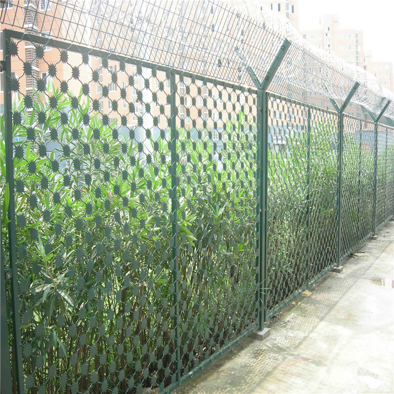 新聞動態(tài)監(jiān)獄護(hù)欄網(wǎng)或刀片刺網(wǎng), 主要是采用高強(qiáng)度的刀片刺網(wǎng)與普通防護(hù)網(wǎng)的結(jié)合,由V型支架立拄,加強(qiáng)型焊接片網(wǎng),安全防盜連接件和刀片刺網(wǎng)組成。刀片刺網(wǎng)是一種新型防護(hù)網(wǎng),由銳利尖角鍍鋅鋼板或不銹鋼薄板做刀片,鋼絲做芯線組合而成的防護(hù)器材。